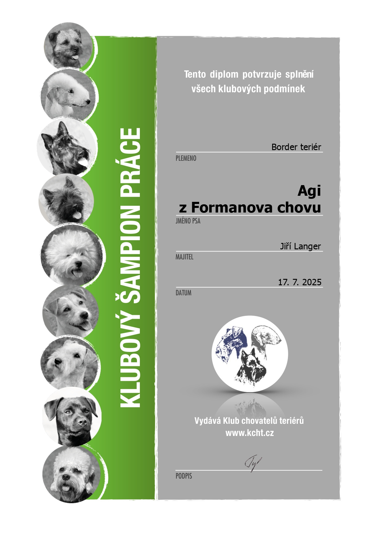 | 17.07.2025 | Klubový šampion práce KCHT | 🏆 |