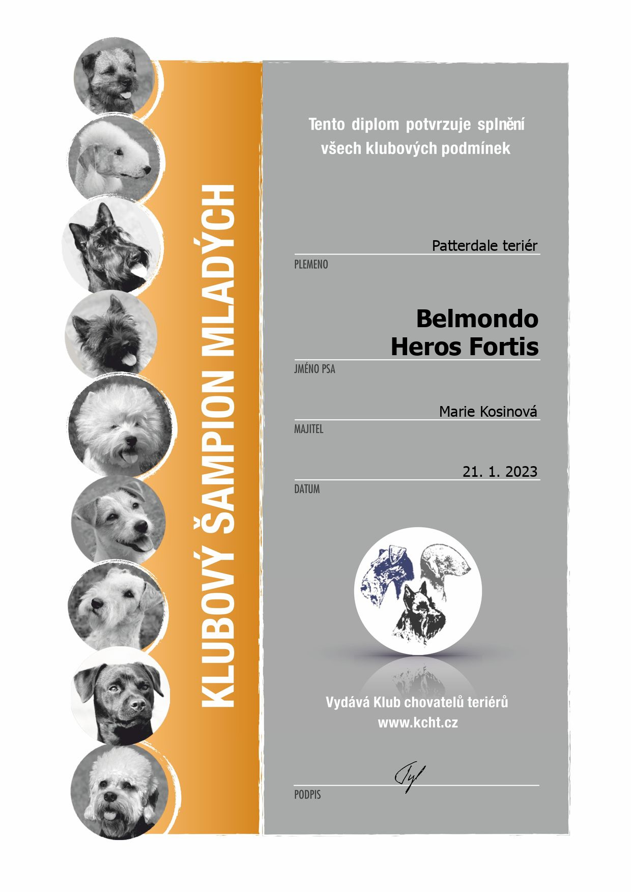 | 31.12.2022 | Nejlepší teriér KCHT/CZ | Krása | 2. místo /43 b. | |