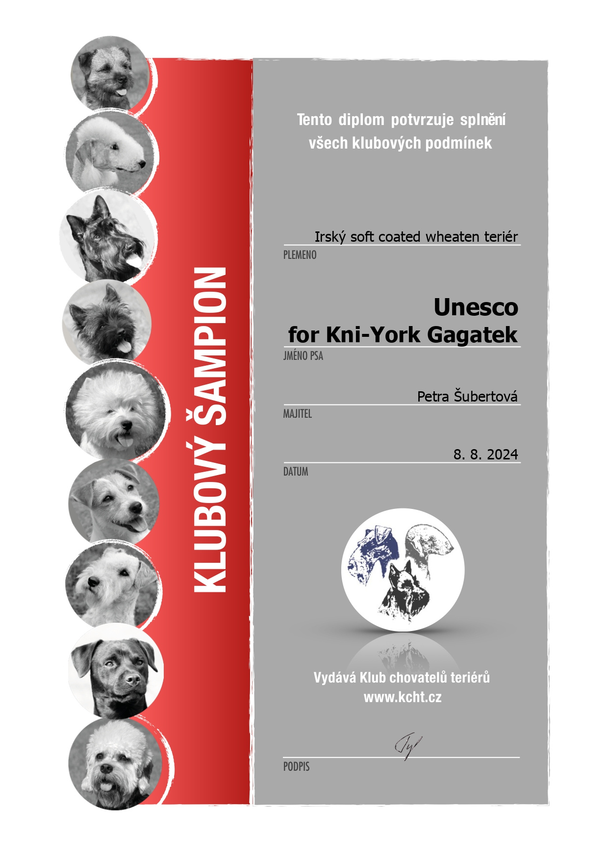 | 31.12.2024 | Nejlepší teriér KCHT/CZ | Krása | 1. místo /114 b. | |