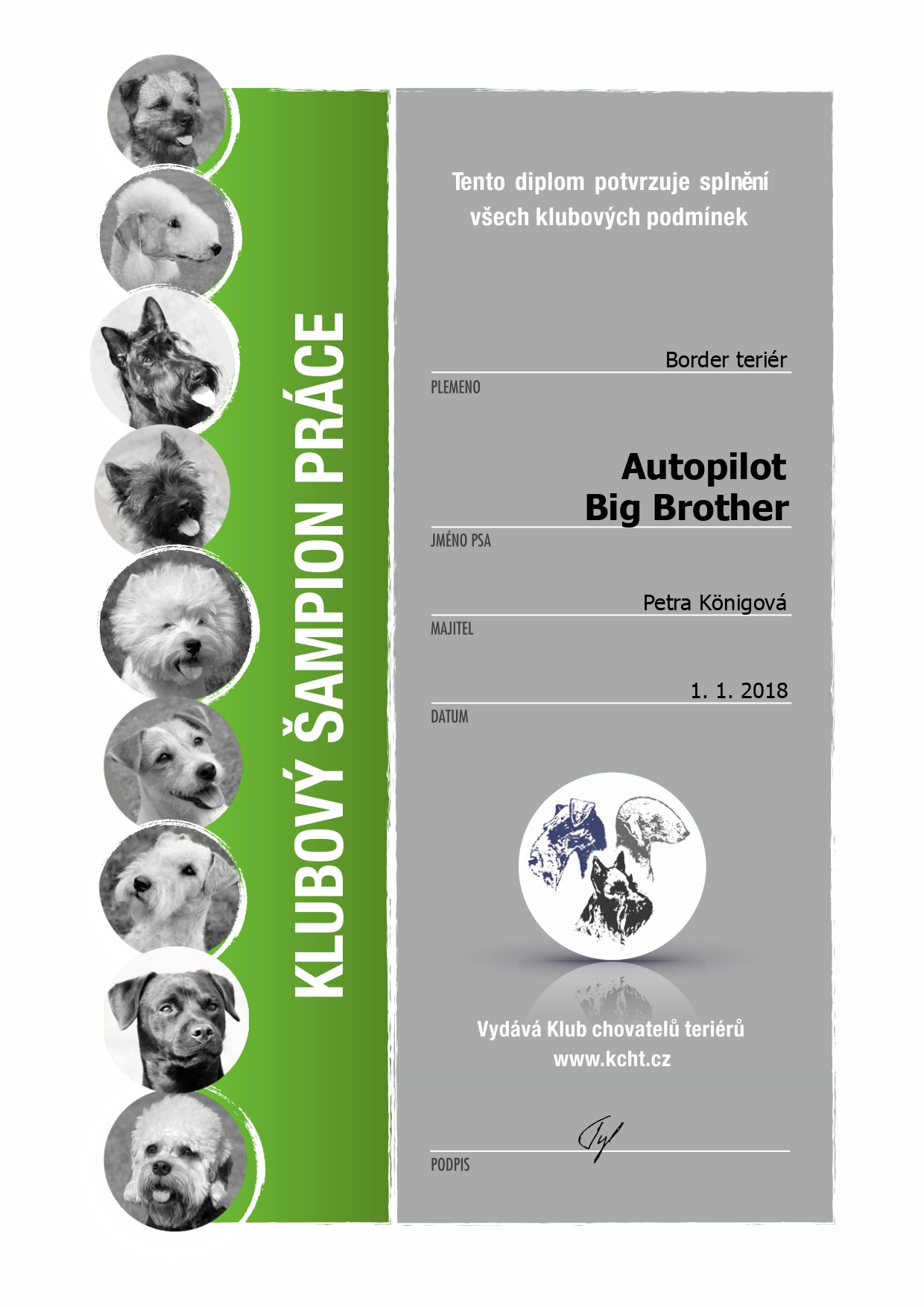 | 01.01.2018 | Klubový šampion práce KCHT | 🏆 |