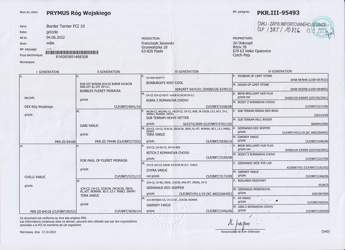 | Datum | Výstava | Rozhodčí | Třída | Ocenění |